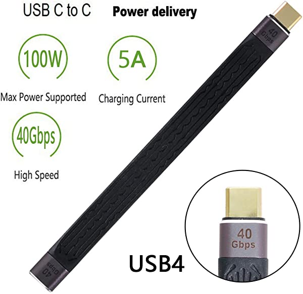 3) 実用的な100W電力供給:このUSB 4ケーブルは、最大100W 20V/5A充電に対応し、USB-Cデバイスが使用されているときに電力を供給します。