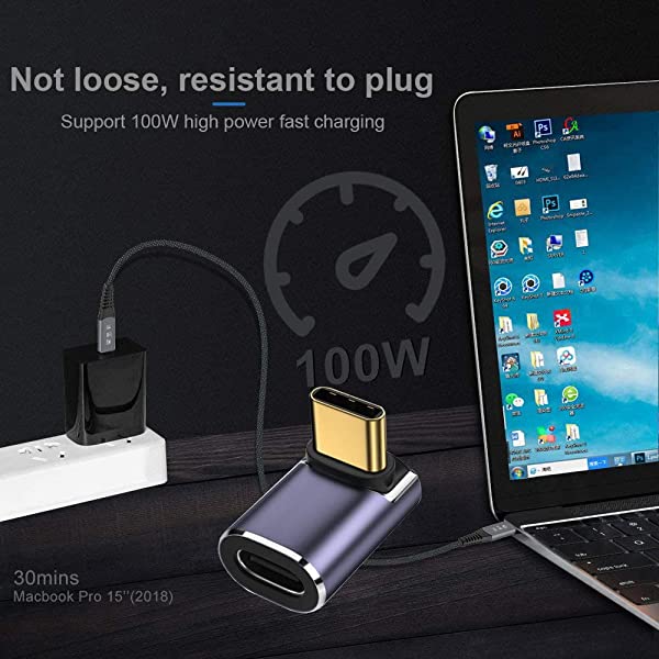 40Gbps USB4 Type C オス→メス 90度 ダウンアングル 100W パワーデータ 8K ビデオアダプター ノートパソコン用 USB4アダプターは、100W 20V 5a パワーマックスと40Gbpsのデータ定格をサポートしています。