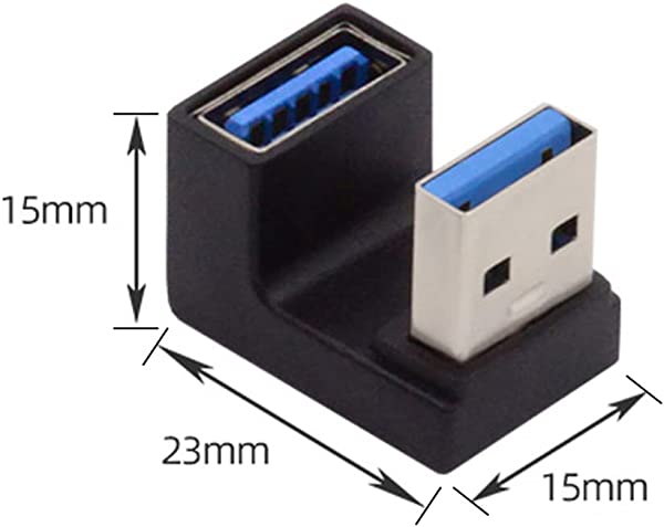 角度付きUSB 3.0アダプタ、タイプAオス/メス、10Gbpsのデータ転送定格をサポート。