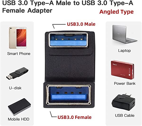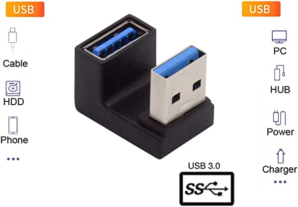 10Gbps USB3.0 オス-メス 延長電源 データ ビデオアダプター 対側 U字型 バックアングル 角度付きUSB 3.0アダプタ、タイプAオス/メス、10Gbpsのデータ転送定格をサポート。