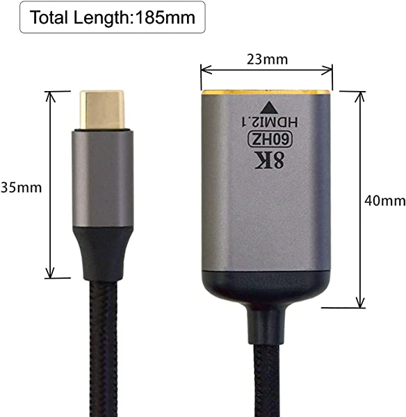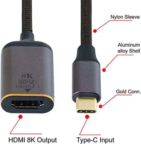 金メッキUSB-C→HDMIモニターケーブル ビデオ8K、4K UHD 2160p、HD 1080p、コネクタ、錫メッキ銅線、耐久性のあるナイロン編組、アルミニウムスリムケース、これらすべてがデバイス間の強固な接続を約束します。