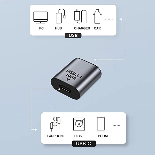 USB-C USB 3.1 Type C メス→ USB 3.0 A メス データアダプター 10Gbps データ電源 ノートパソコン タブレット スマホ用