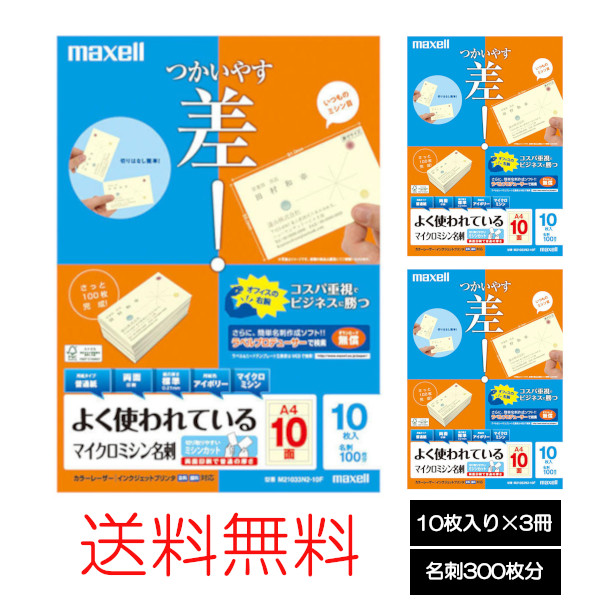 【送料無料】マクセル maxell 名刺用紙 カラーレーザー インクジェット対応 普通紙 アイボリー 両面 標準厚 A4 10面 10枚 M21033N2-10F マイクロミシン [メール便]