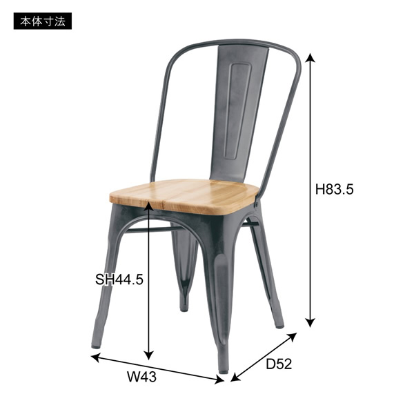 ●スタイリッシュなアイアンとナチュラルな天然木でおしゃれなカフェ風スタイルに。 ●座面は美しい木目が人気の天然木(アッシュ)を使用。 アイアンフレームとの相性も良くデザイン性の高い仕上がり。 ●SV(シルバー)カラーは、要所々々に色差を出しヴィンテージ感のあるテイストに仕上げました(半艶仕上げ)。 ●脚先には床への傷防止になるパーツが付いているので安心です。 ※スタッキング(積み重ね)をすると木製座面へ傷等のダメージが出てしまう為、スタッキングはご遠慮ください。 ■材質:天然木(アッシュ) ラッカー塗装 スチール(粉体塗装) ■静的耐荷重:80kg ■組立:完成品 ■商品サイズ:W43×D52×H83.5×SH44.5 ※写真はメーカー様のカタログ等から掲載させて頂いております。 実物の商品と写真の色が若干写真写り等により異なる場合がありますのでご注意くださいませ。 万が一の際でございましても返品はお受け致しかねます。 ※記載は商品仕様の一部です。仕様説明不足等の理由での返品はできません。特に適合等は必ずご確認ください。
