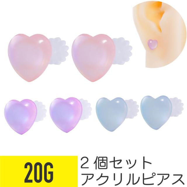 2個セット アクリル パステルカラー ハート ピアス 20G スタッドピアス ヘリックス 軟骨ピアス ボディピアス ゆめかわ ファンシー