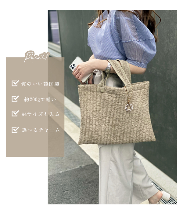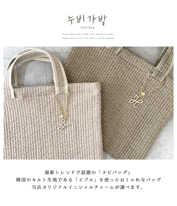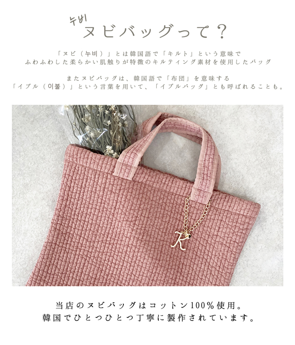 【今なら55%オフ!1,780円】【選べるチャーム付き!】トートバッグ ヌビバッグ レディース マザーズバッグ イニシャル チャーム キルティング レッスンバッグ おけいこ 保育園 幼稚園 学校 子ども こども 習い事 サブバッグ 送料無料 かばん 通勤 通学