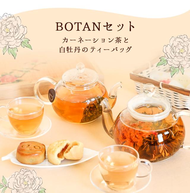 リムテー ギフト カーネーション 花 咲く お茶 工芸茶 白茶 花茶 白牡丹 お菓子 詰め合わせ BOTANセット プレゼント プチギフト 中国茶 ホワイトティー 月餅 パイナップルケーキ 内祝い 職場 個包装 送料無料 あす楽