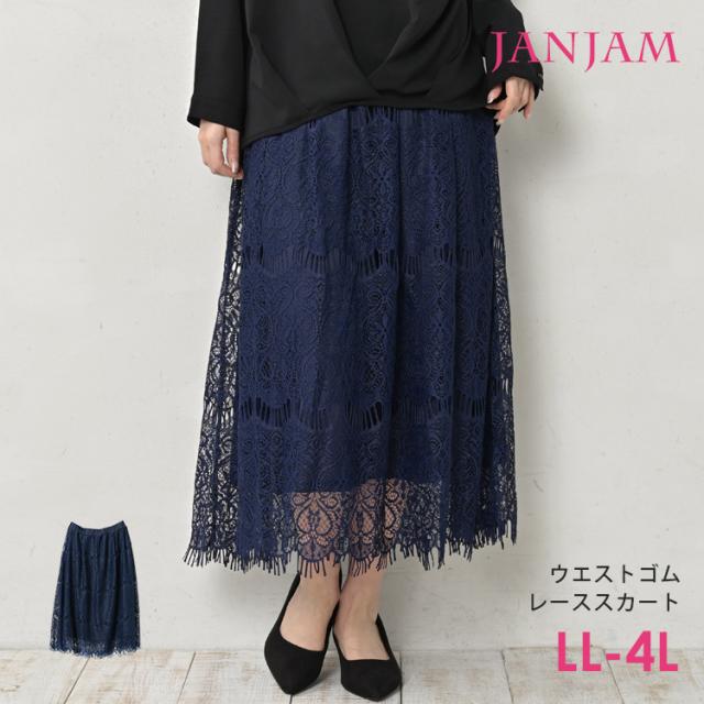 大きいサイズ レディース レーススカート ロング丈 メール便対応 ウエストゴム Aライン ボトムス LL/3L/4L ゆったりサイズ ぽっちゃり女子 プラスサイズ