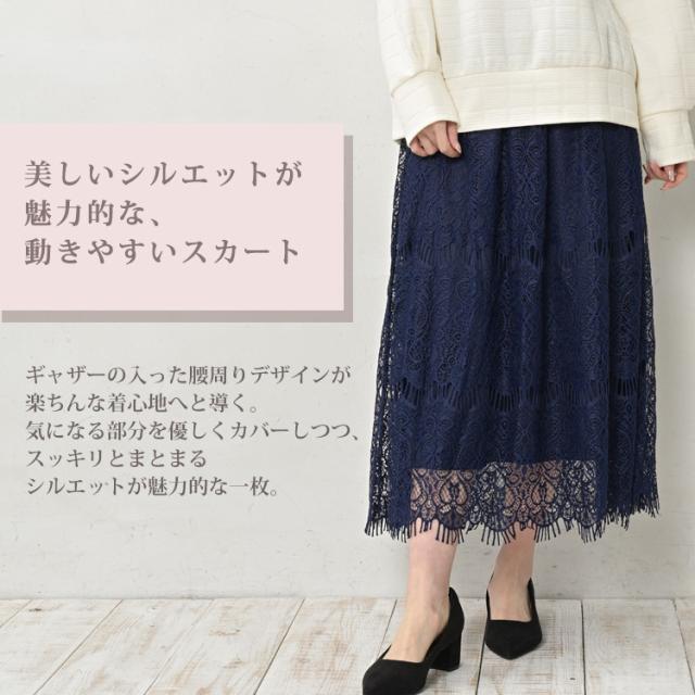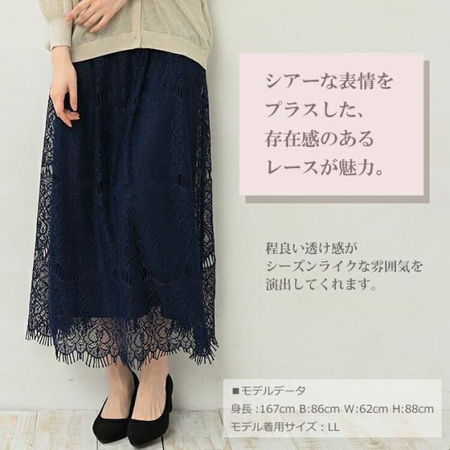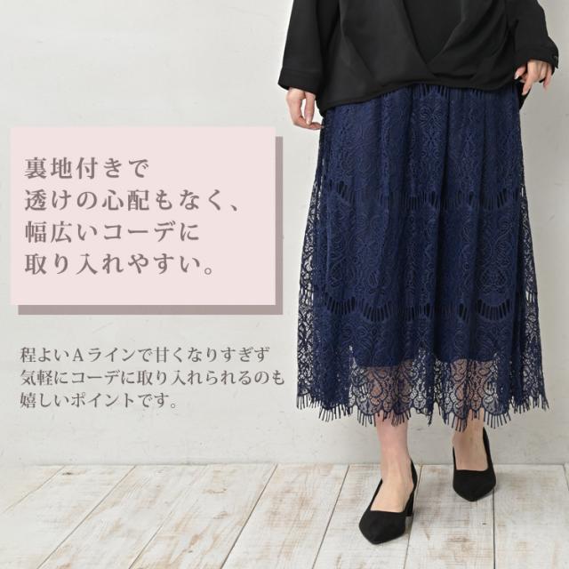 【メール便対応】華やかでクラシカルなこだわりレーススカート。 ロング丈スカート 30代 40代 50代 春服 夏服 秋服 春物 夏物 秋物 2023 裏地あり 体型カバー 下半身カバー カジュアル おしゃれ きれいめ かわいい ゆったりサイズ ぽっちゃり女子 プラスサイズ 大きいサイズ レディース ロング丈スカート ミモレスカート ロングスカート レーススカート Aラインスカート 総レース ウエストゴム ウエストギャザー 着心地ラクラク ロング丈 アンクル丈 ミモレ丈 膝下丈 裏地あり 透けない 体型カバー 下半身カバー 細見え 脚長効果 Aライン すっきりシルエット 春服 夏服 秋服 春物 夏物 秋物 春スカート 夏スカート 秋スカート ロング丈レーススカート ボトムス 大人 カジュアル ナチュラル フェミニン ガーリー シック 上品 セミフォーマル クラシカル オフィス おしゃれ きれいめ かわいい かっこいい 着こなし コーデ 定番 春コーデ 夏コーデ 秋コーデ ファッション 大きめ 女性 婦人用 ミセス 30代 40代 50代 2023 春 夏 秋 紺 LL 3L 4L 13号 15号 17号 cbi-ssa-bt0155