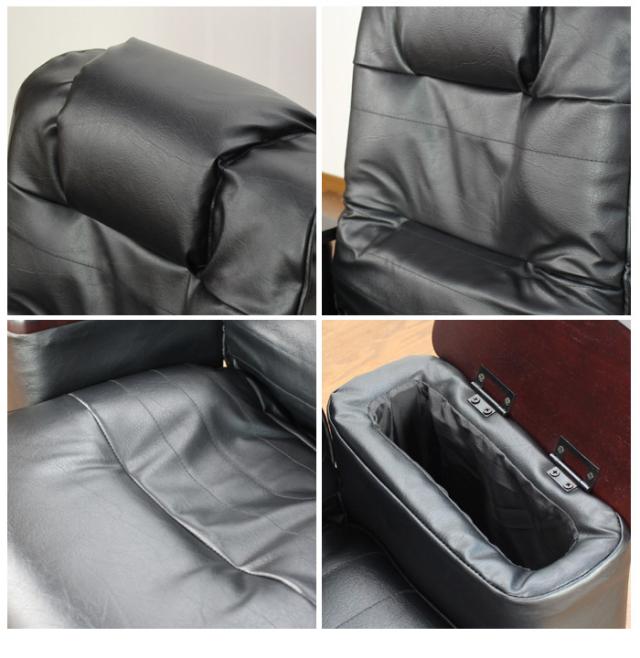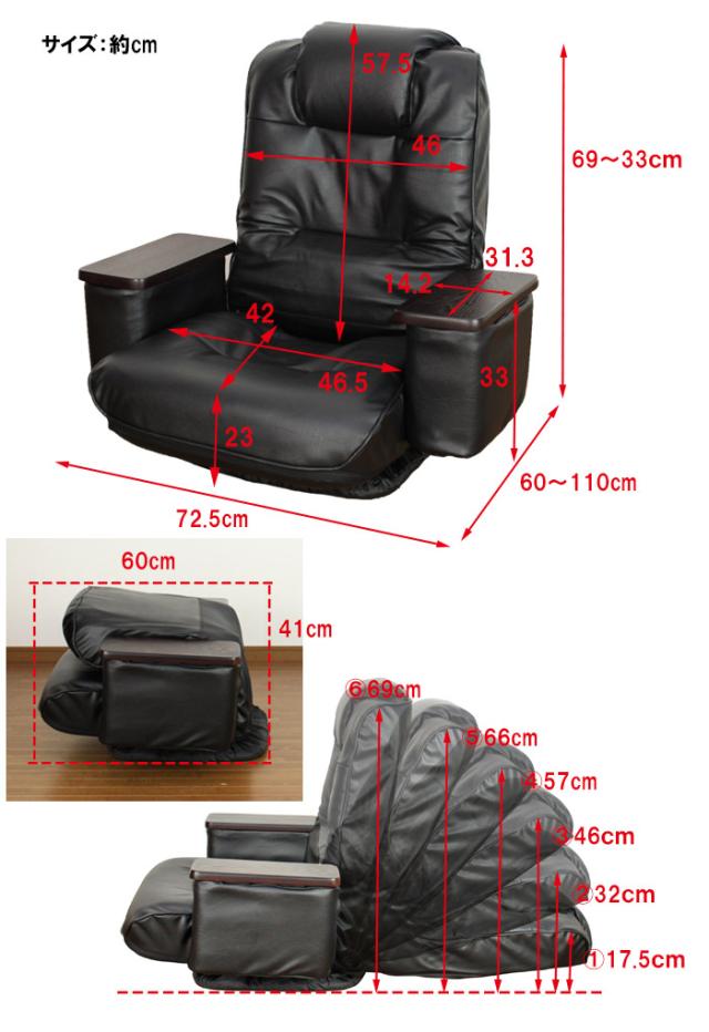 高級感のある天然木の肘付。回転盤は布で覆われているので床や畳を傷つけません。リモコン・眼鏡・ペン等が入る便利な肘ポケット2個付。使用しない時や移動時は折りたためてコンパクトサイズになります。