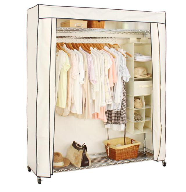 カバー付き頑丈ハンガーラック 幅150cm 収納 収納家具 リビング収納 本棚 ラック ハンガーラック コートハンガー ハンガー掛け クローゼット ワードローブ スチール製 UV・PV加工 紫外線カット(代引不可)【送料無料】