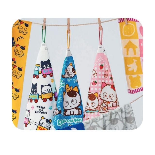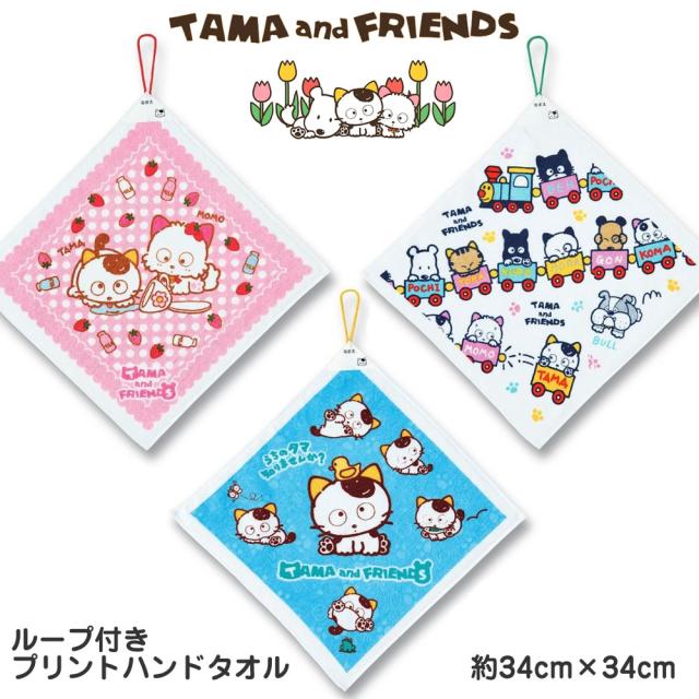 タマ&フレンズ ループ付き プリント ハンドタオル 【約34×34cm】うちのタマしりませんか? お手拭きタオル 吊り下げタオル シャーリング プリントタオル 猫柄 ねこ ペット 薄手 紐付き 保育園 幼稚園