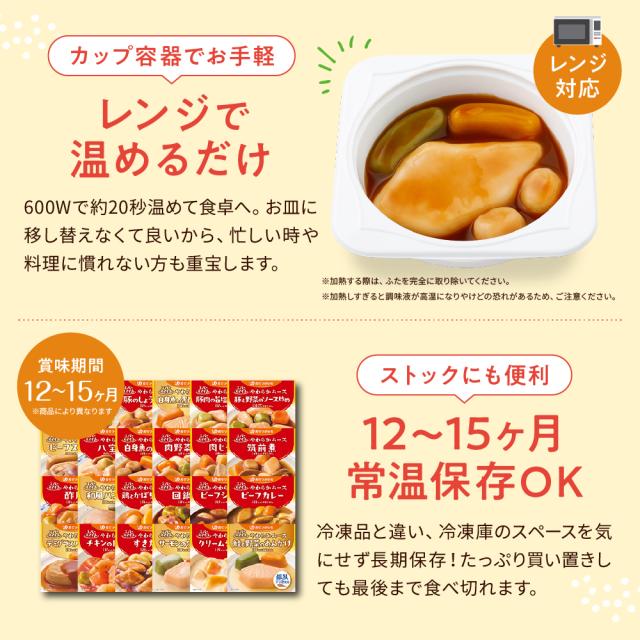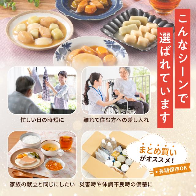 - 味は当然 メニューの豊富さ 見た目の楽しさ 何より常温保管が魅力です 要介護の母の災害時の非常食としても心強いです