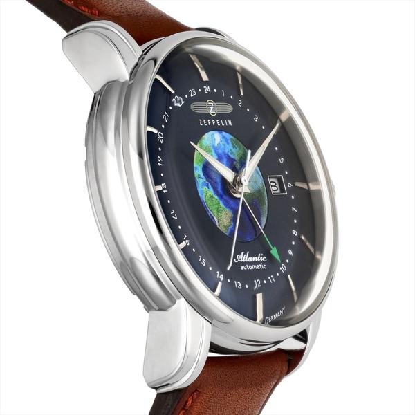 ツェッペリン ATLANTIC アトランティック GMT 8468-3 メンズ 腕時計 自動巻き 機械式 革ベルト ブループラネット 地球