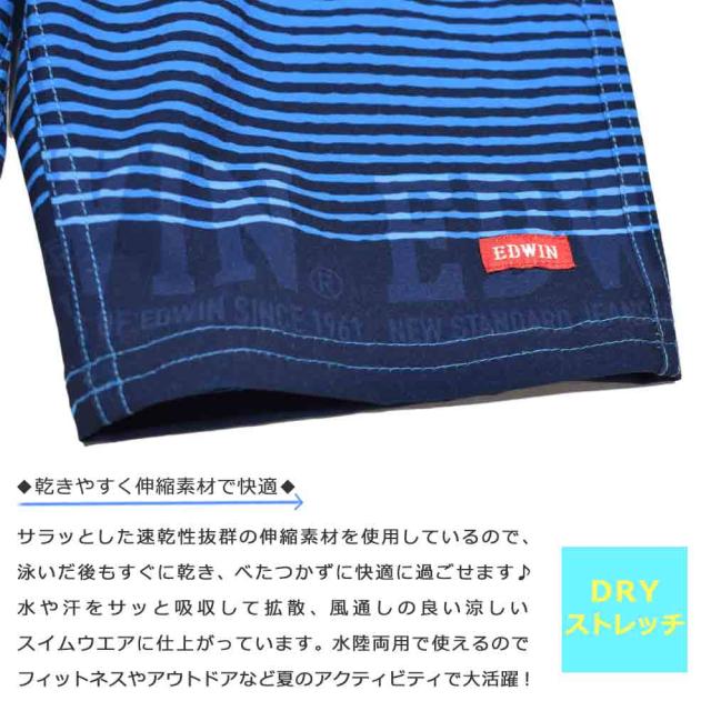 検) EDWIN エドウィン ブルー ブラック ボーダー ロゴ 子供用 ボーイズ 海水パンツ サーフ トランクス 水泳 お洒落 かっこいい プール スイミング 海水浴 スイムウェア 幼稚園 小学生 低学年 3歳 4歳 5歳 6歳