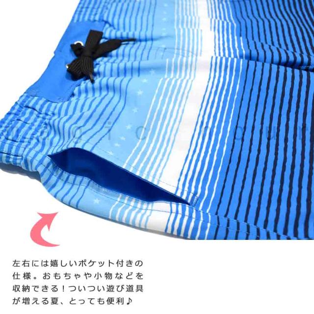 海水浴、プールやアウトドアに使える子どもサイズのお洒落なサーフパンツ♪ ポケット付き・ウエスト調節紐・インナーサポーター内臓で機能性も◎ さらっとした手触りの伸縮性◎のストレッチ生地&速乾素材でべたつかず快適に過ごせる! 脱げにくく動きやすいウエストゴム仕様で思いっきり遊べます! |