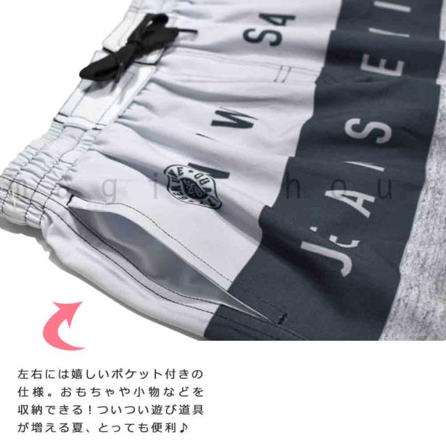 海水浴、プールやアウトドアに使える子どもサイズのお洒落なサーフパンツ♪ ポケット付き・ウエスト調節紐・インナーサポーター内臓で機能性も◎ さらっとした手触りの伸縮性◎のストレッチ生地&速乾素材でべたつかず快適に過ごせる! 脱げにくく動きやすいウエストゴム仕様で思いっきり遊べます! |
