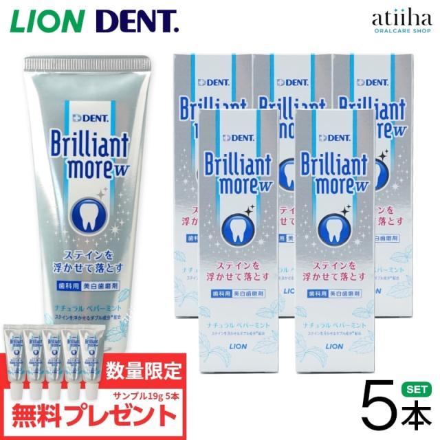 【送料無料】LION ライオン 歯みがき粉 Brilliant more W ブリリアントモアダブル 90g ナチュラルペパーミント 5本 おまけサンプル5本付 ホワイトニング 白い歯 ステイン除去 歯磨き粉