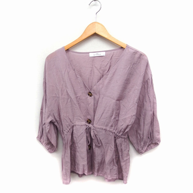 【中古】レイカズン Ray cassin シャツ ブラウス 七分袖 Vネック リボン 無地 綿 M スモーキーピンク /FT22 レディース