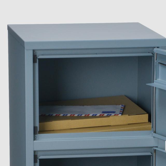 取り出し口は、上下に2つ付いていてたくさんの荷物を入れることができる大容量タイプ。キーロック付き、扉は鍵を使用しなくてもハンドルでも開閉することができます。