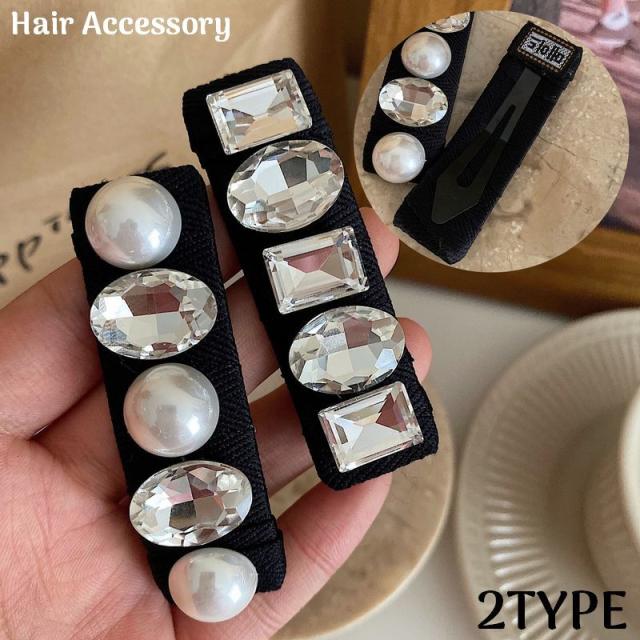 ヘアピン パッチン留め ヘアクリップ レディース ヘアアクセサリー 髪飾り 髪留め 大粒 ラインストーン パール調 幅広 大きめ