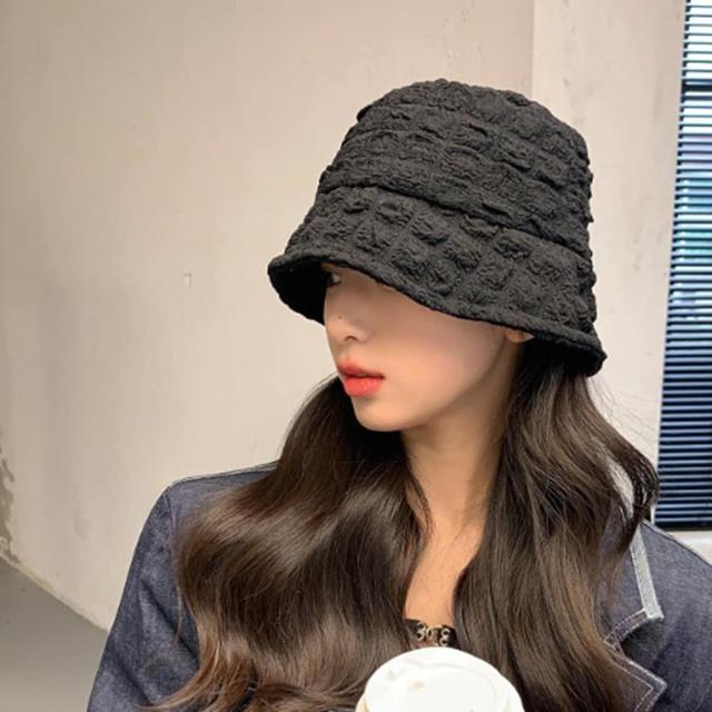 流行のポップコーン生地を使用したバケットハット。