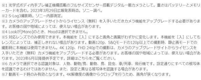 15+ストップ※2のワイドラチチュードによる豊かな階調性能のほか、4K60pに対応するほか、カメラのアップグレードを行うことで4K120p※3まで対応可能な動画性能を有します。また、新機能の「シネマティックVlog設定」※4は、表現したい意図やシーンに合わせて色味をかんたんに設定できるので、誰でも映画のような映像表現でVlog撮影ができます。さらに映像制作用デジタルシネマカメラ『VENICE』の開発を通じて培った画作り「S-Cinetone」を搭載し、人の肌を美しく描写し、被写体を際立たせます。動画撮影時は、フォーカシング中の画角変動を抑える「ブリージング補正」※5機能を備えます。