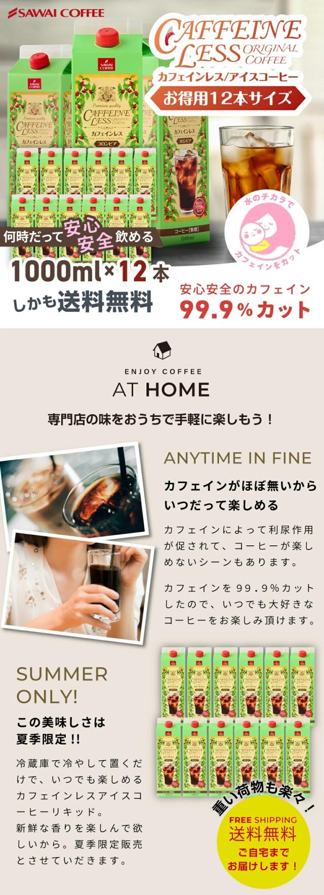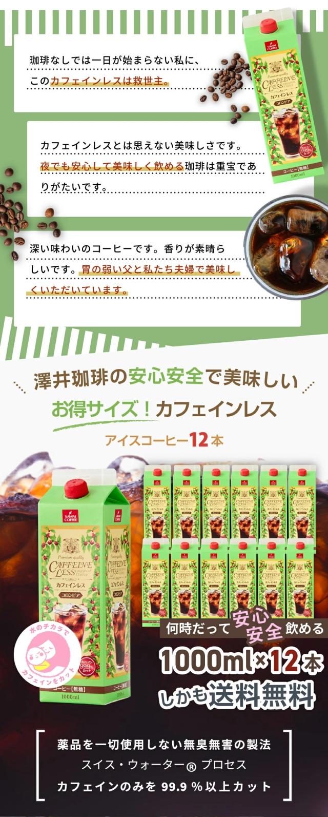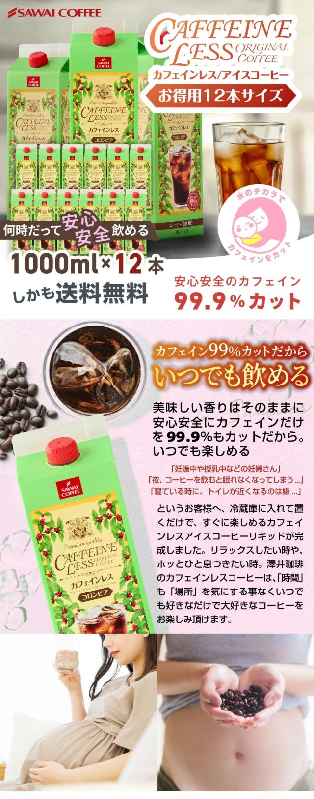 カフェインレス カフェインレスアイスコーヒー1,000ml×12本 送料無料 デカフェ ノンカフェイン カフェイン99%カット コーヒー スペシャリティコーヒー 珈琲 無添加 無着色 ブラック 無糖 リキッド おしゃれ かわいい 高級