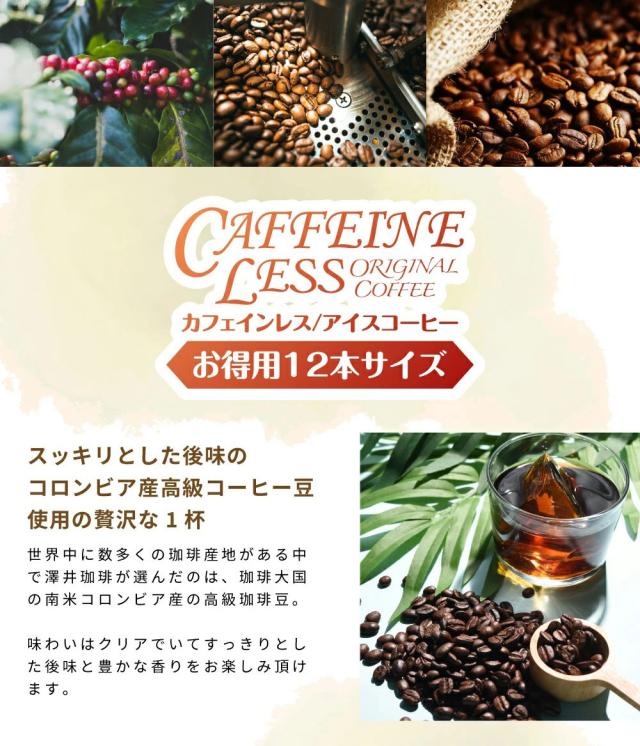 | この「カフェインレス/アイスコーヒーお得用12本セット」は、澤井珈琲が厳選したコロンビア産高級コーヒー豆を使用し、カフェイン99.9%カットのコーヒーです。クリアでスッキリとした後味で、いつでも安心して楽しめるのが魅力。体に優しい、そして美味しさも追求したコーヒーで、リラックスした時間を提供します。 1. カフェインレスだから、いつでも楽しめる安心感 このカフェインレスコーヒーは、カフェインを99.9%取り除いているため、夜でも安心して飲むことができます。カフェインによる利尿作用や眠れなくなる心配がありません。使用しているのは「お水」だけで、他の化学物質は一切使用していないので、体にも優しい作りです。カフェタイムを気にせず楽しめるのはもちろん、健康に気を使う人や、リラックスしたい夜にもぴったりの一杯です。 2. コロンビア産高級コーヒー豆の贅沢な味わい 澤井珈琲が選び抜いたコロンビア産の高級コーヒー豆を使用しているため、豊かな香りとクリアでスッキリとした後味が特徴です。どんなシーンでも飲みやすく、後味もさっぱりしているので、アイスコーヒーとして楽しむには最高の品質です。この12本セットなら、家族や友人ともシェアでき、毎日のコーヒータイムがさらに贅沢になります。 3. 手軽におうちで専門店の味を楽しめる 自宅で簡単に専門店のような本格的なアイスコーヒーを楽しめるのも、このセットの大きな魅力です。澤井珈琲のこだわりが詰まったカフェインレスコーヒーは、忙しい日々の中でもホッと一息つける瞬間を提供します。大容量の12本セットなので、ストックも十分で、いつでも好きな時に好きなだけ楽しめます。家で手軽に高品質のアイスコーヒーを味わいたい方に最適です。 | |