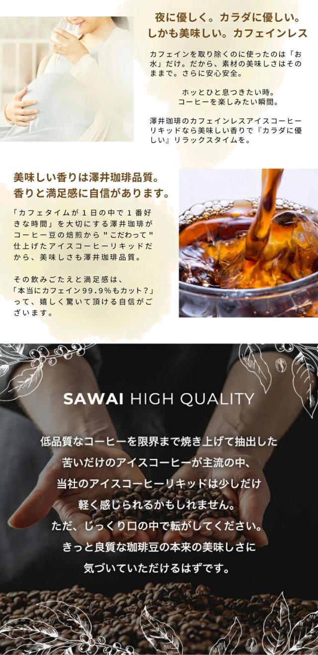 | こんな方にオススメです | 夏に冷たい飲み物を探している方: 涼しさを感じるアイスコーヒーは、暑さを乗り切るのにぴったりです 健康に気を使う人や、リラックスしたい夜に: カフェインを99.9%取り除いているため、夜でも安心して飲むことができます。 |