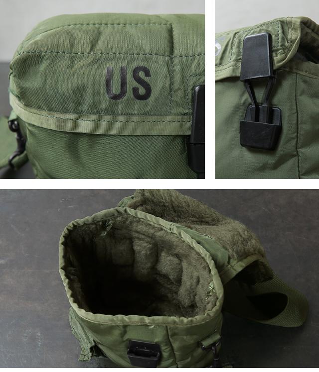 米軍放出品のキャンティーンカバーとストラップのセットです。アジャスター付きのユーティリティストラップが付属しており、肩に掛けてショルダーバッグとして使用できます。メインコンパートメントはバックルで開閉するデザインです。