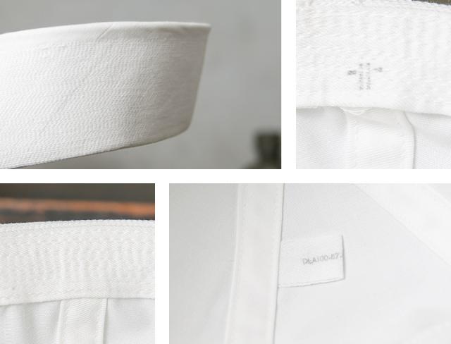 | 商品説明 | 実物 新品 デッドストック 米軍 セーラーハット ホワイトのご紹介です。 アメリカ海軍で伝統的に着用されるセーラーハットは、通称ゴブハットと呼ばれる水兵帽として広く認知されているアイテムだと思います。”ゴブ”とはセーラーの俗語でツバを折り替えしたルックスが特徴です。強度を高めるためにツバの部分には非常に細かいステッチがはいっているので型崩れの心配もありません。 そんなユニークなセーラーハットは近年では、ツバをおろしたスタイルで着用するのが人気となっています。さまざまなブランドでも取り入れられているデザインはテニスハットのような丸いクラウンに対し、下に向かって伸びたツバが目深にかぶったときに印象的な雰囲気を与えてくれます。 | ||||||||||||||