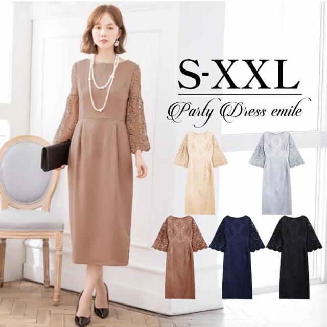 レビュー特典 ドレス 結婚式 お呼ばれ ワンピース パーティードレス フォーマルワンピース 二次会 体型カバー ロングドレス フォーマル ワンピース ミモレ丈 emile0205 卒業式 入学式 同窓会 フォーマルワンピース