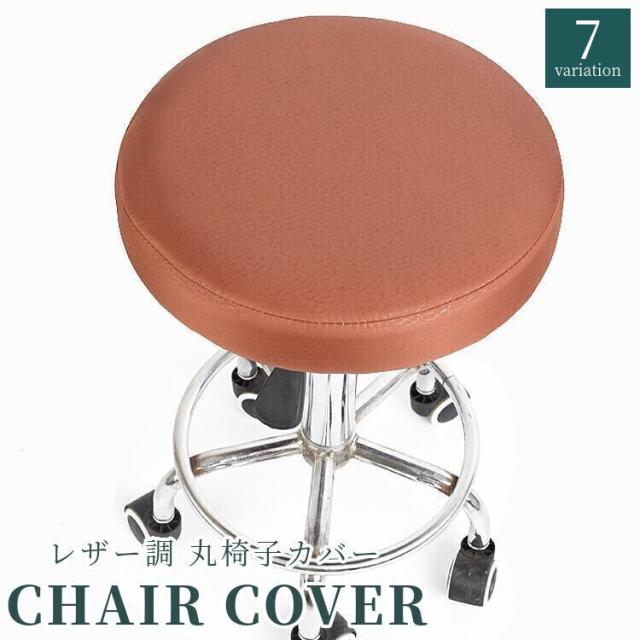 丸椅子カバー チェアカバー 回転椅子カバー 円形 丸型 ラウンド レザー調 無地 保護 汚れ防止 傷防止 模様替え イスカバー