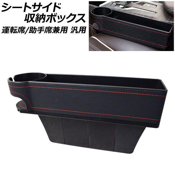 シートサイド収納ボックス ブラック×レッドステッチ 運転席/助手席兼用 汎用 AP-AS849-BKRDS