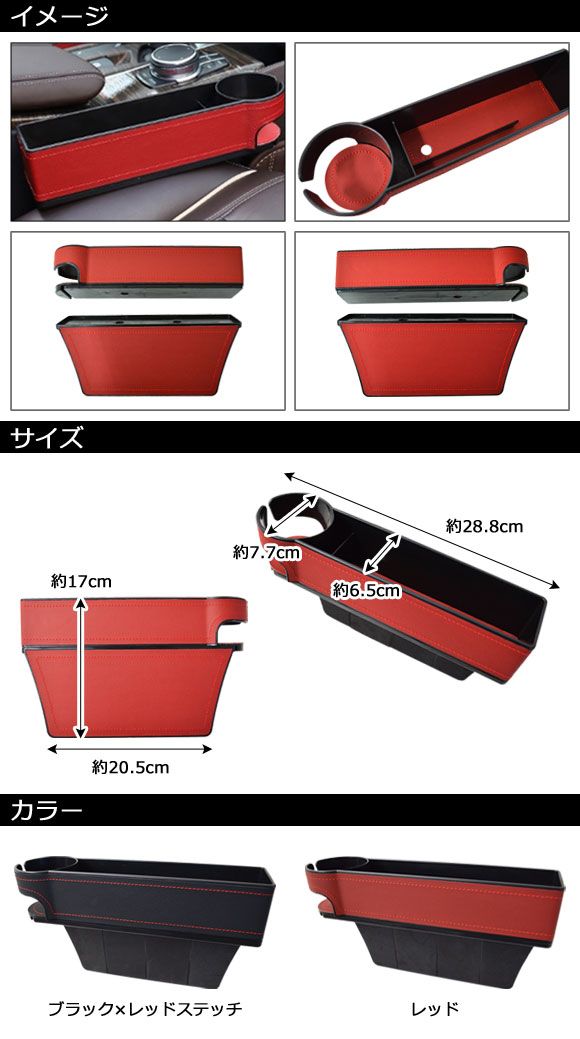 シートサイド収納ボックス ブラック×レッドステッチ 運転席/助手席兼用 汎用 AP-AS849-BKRDS カーシート収納ボックス 隙間ポケット シートポケット 収納ケース 車用収納ボックス 小物収納 ギャップポケット HY022107-BK 収納 ポケット 小物 小物入れ 収納ボックス 隙間 すき間 シート スペース センターコンソール 設置 運転席 助手席 サイド 横 落下 防止 ホルダー ドリンクホルダー カップホルダー ドリンク 飲み物 座席 ボックス BOX 便利 車内 整理 整頓 革 皮 レザー 合成皮革 合皮 フェイクレザー 黒 ブラック black 赤 レッド red ステッチ 内装 内装パーツ パーツ インテリア ドレスアップ カスタム カスタマイズ 4570107739166 automobile motorcar オートモービル モーターカー カー 車 自動車 車両 アクセント アクセサリー アクセサリ 505890660