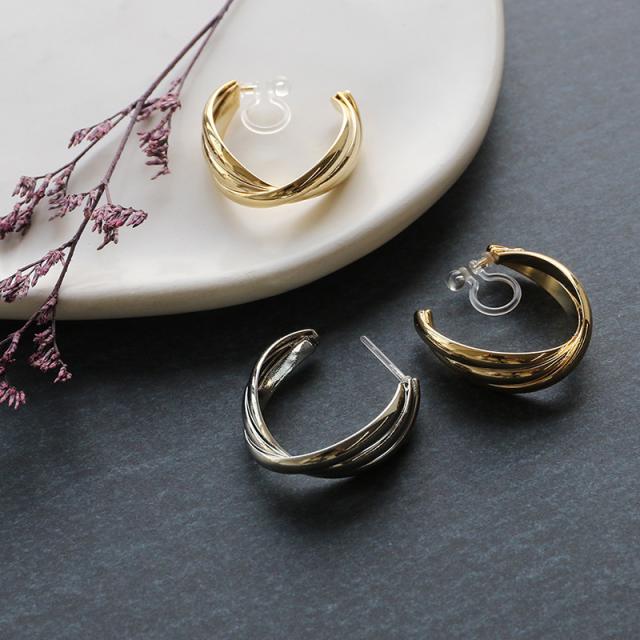 ひねりを加えた樹脂ポストピアスとオメガイヤリングです。