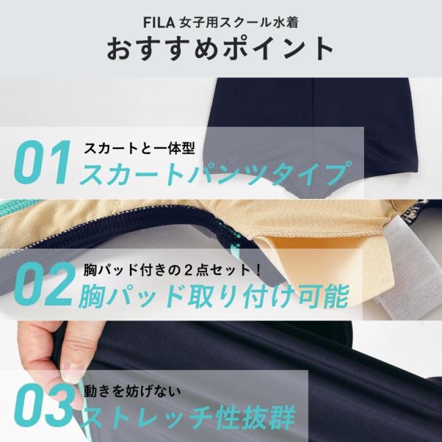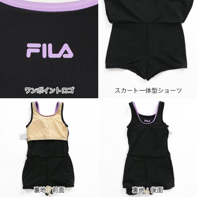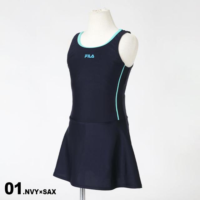 FILA/フィラ キッズ スクール水着 Aライン ワンピース 水着 みずぎ スイムウェア スカート パッド付き 学校用 プール 女子用 113965