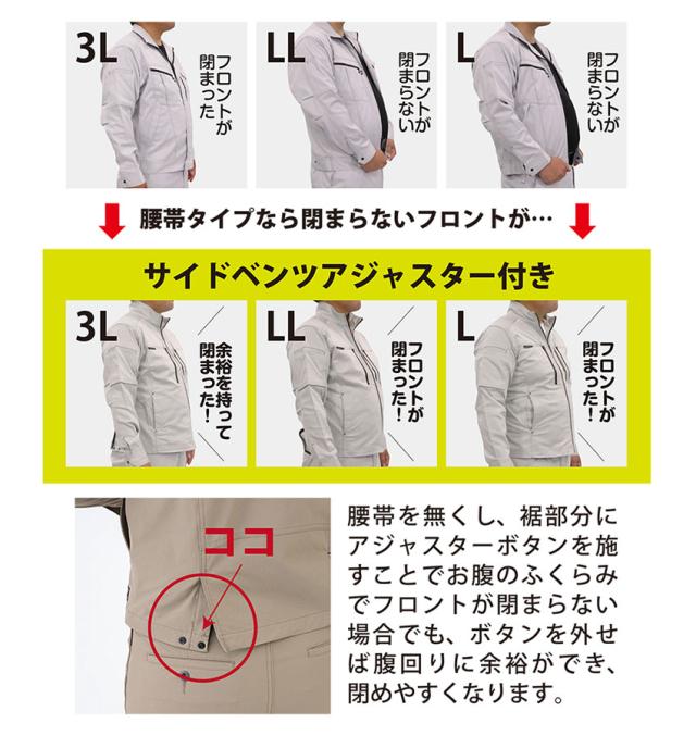 反射素材(両袖・背中)、野帳も入る縦ファスナーポケット、両脇マルチポケット、サイドベンツアジャスター、左胸ペン差し付ポケット、両袖マルチポケット、タブレットも入る左内ポケット(10.1インチまで)、袖口隠しドットボタン