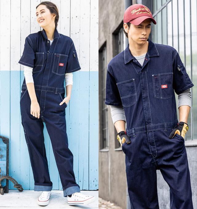 作業服 つなぎ ディッキーズ Dickies CORDURAデニム半袖ツナギ D-752 作業着 春夏