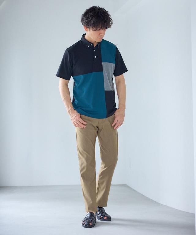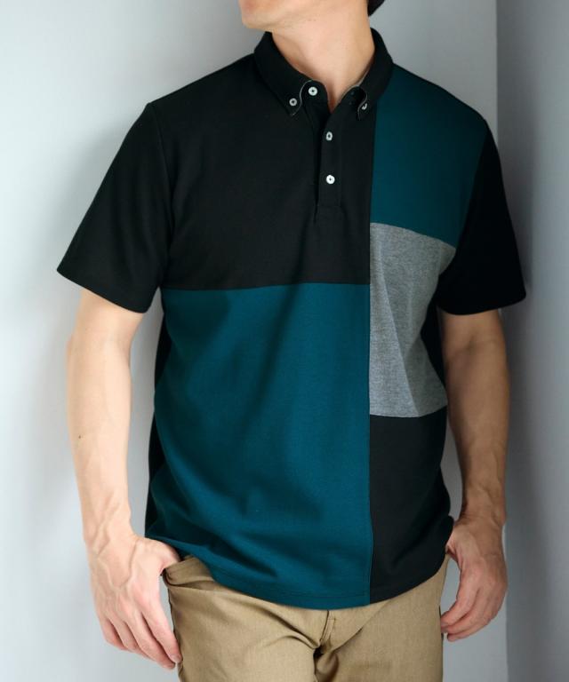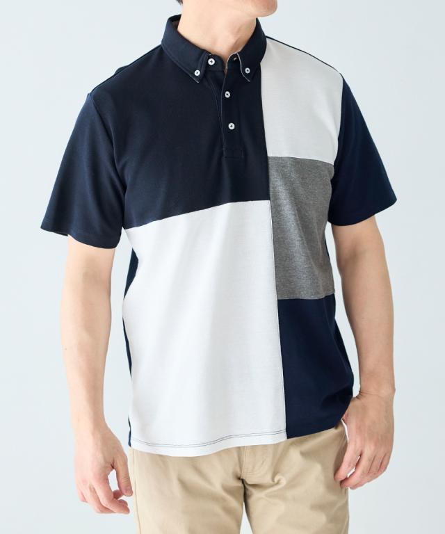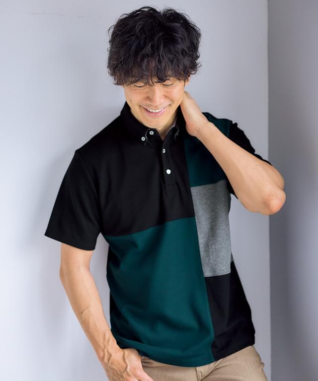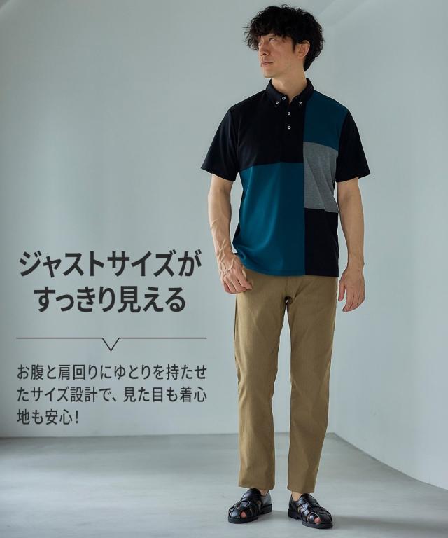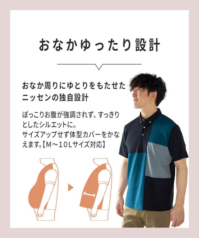 ポロシャツ メンズ 半袖 切替 デザイン カノコ 3L以上お腹ゆったり ネイビー×オフホワイト系/黒×グリーン系 3L〜10L ニッセン nissen
