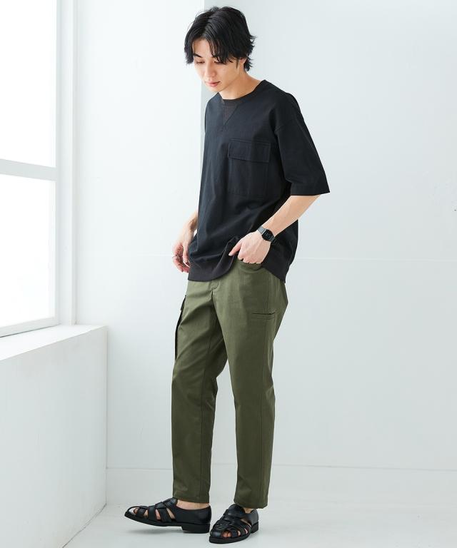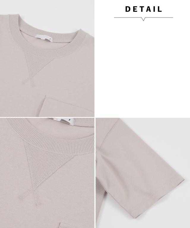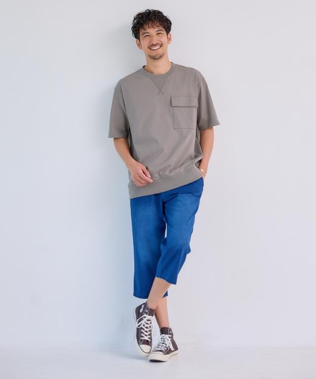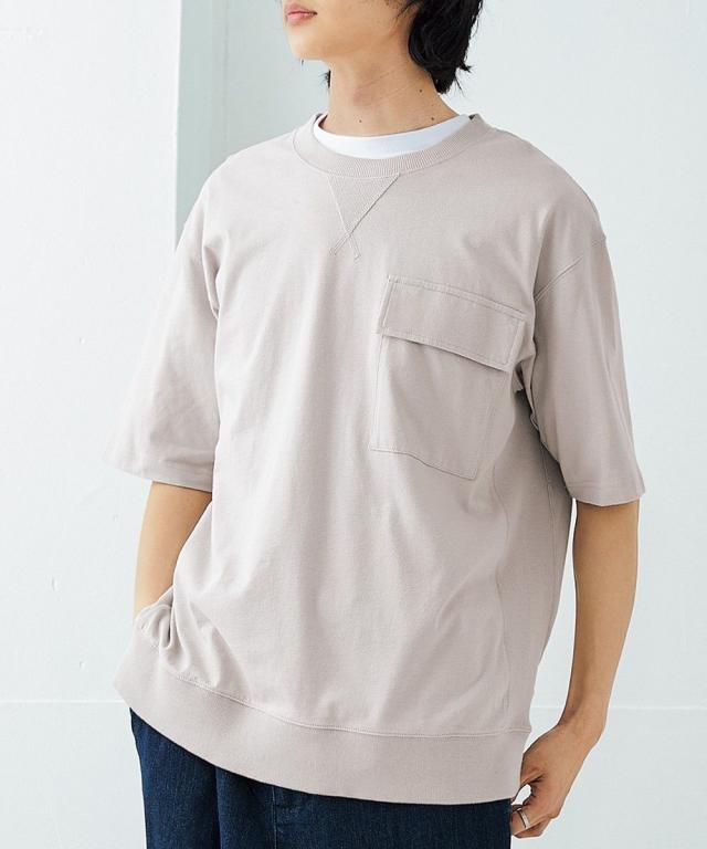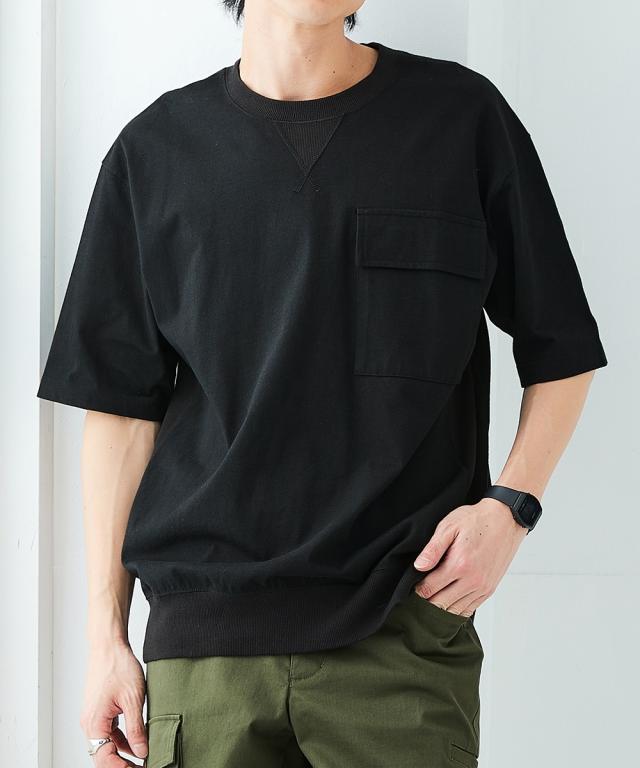 リブ付ミドルウェイト綿100%オーバーサイズポケット付Tシャツ