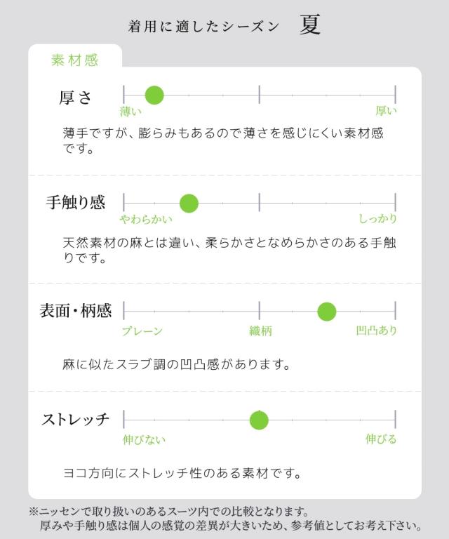 ☆大人気シリーズのリネンライクスーツに新作デザインが登場しました☆◆おしゃれも機能も譲れない。夏をおしゃれに乗り切る為の大人のセットアップシリーズ◆汗ばむ季節だからこその悩みを解消する吸汗速乾機能だけでなく、ストレッチも効いている人気のリネンライクスーツ。・見た目は涼し気なリネン調なのに、ストレッチ性がありしわになりにくいので、座り仕事等一日着用した後もくたびれ感が少なく、キレイが続きます。・薄くて軽い素材感に加え、吸汗速乾・UVカットなど夏に嬉しい機能性もありますので、通勤など外出時も快適に過ごせますよ