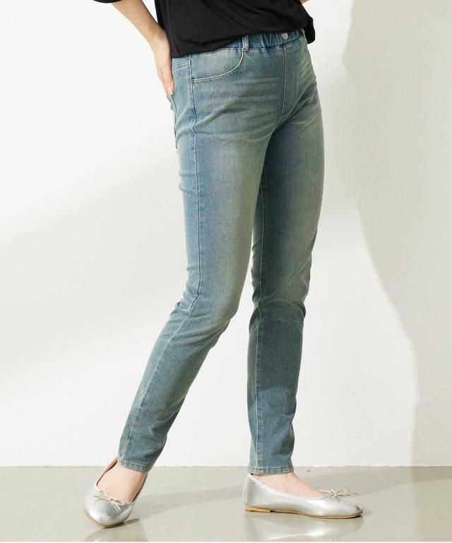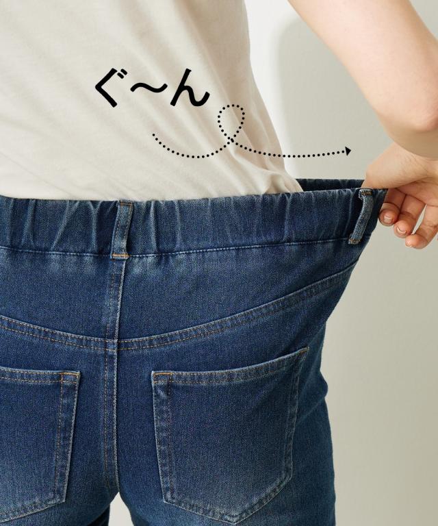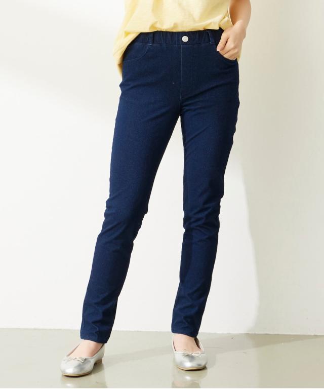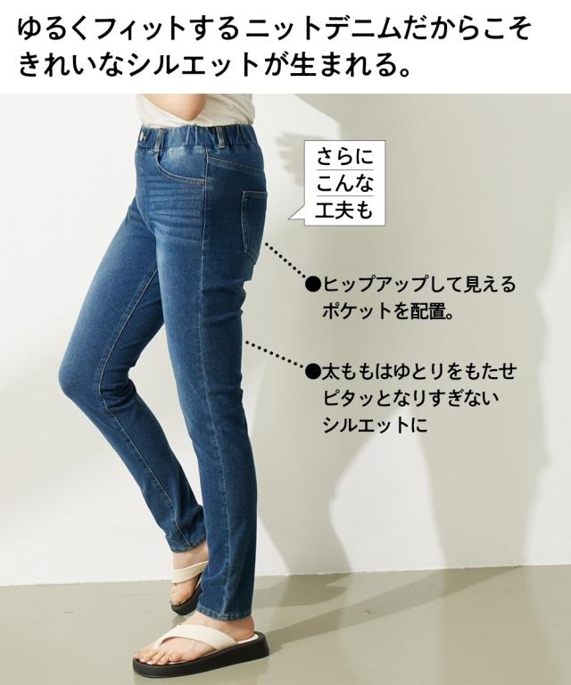 パンツ スキニー スリム 大きいサイズ レディース 着るヒヤロン ストレッチ ひんやり ニット デニム ゆったり太もも 股下73cm 夏 インディゴネイビー/オーバーダイベージュ/ユーズドブルー 6L/8L/10L ニッセン nissen
