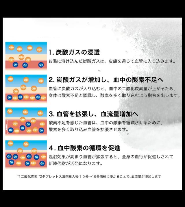 日本製 炭酸入浴剤 炭酸源 1回用 入浴剤 温浴 炭酸ガス 温泉 血流促進 温浴効果 新陳代謝 美肌 疲労回復 腰痛 肩こり にきび あせも 荒れ性 神経痛 冷え性 医薬部外品 プレゼント おうち時間 女性 男性 ギフト リラックス ととのい お風呂 温活 タブレット 1錠