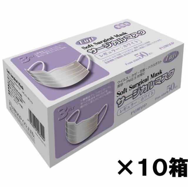 【送料込み】 【10箱セット】 尚美堂 フジ ソフトサージカルマスク(3PLY)ホワイト 50枚入り 【即納】【業務用】【医療用サージカル マスク】