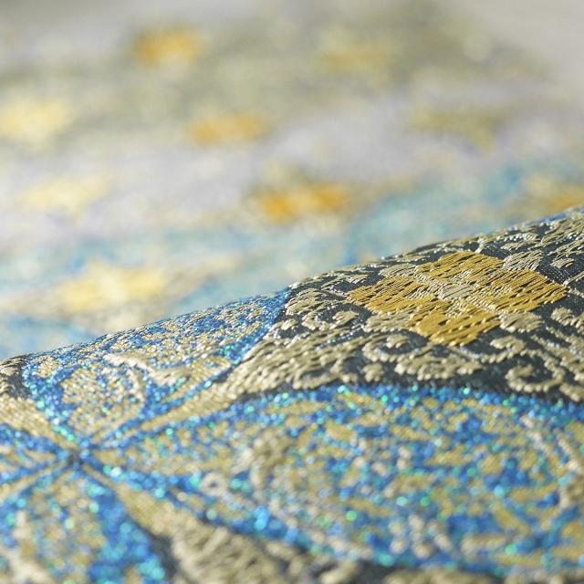 袋帯 華やか ゴージャス 全体ラメ 青 七宝 エメラルド 古典柄 西陣織 大光織物 お仕立て上がり 振袖用 訪問着用 正装 和装 フォーマル