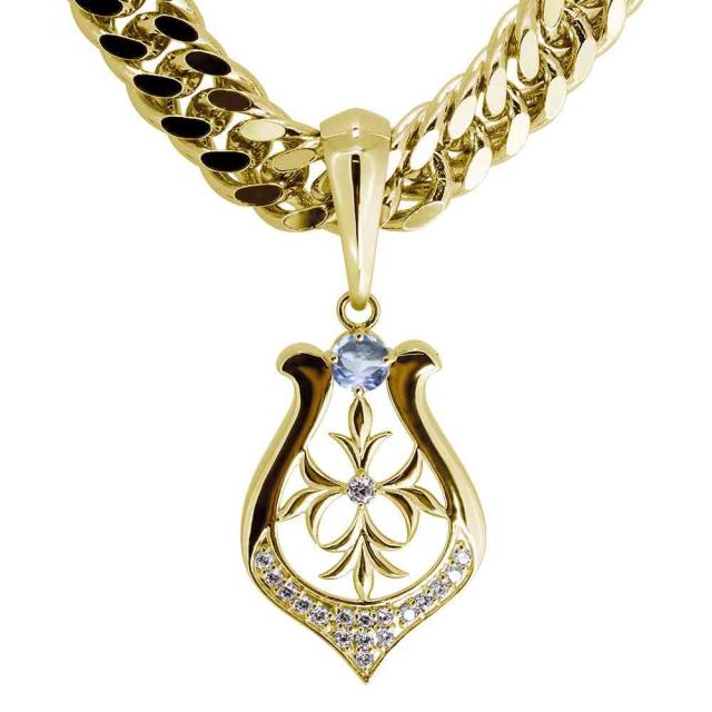 18金 ネックレス メンズ 喜平 ペンダント 馬蹄 クロス アクアマリンサンタマリア 3月誕生石 18k ゴールド