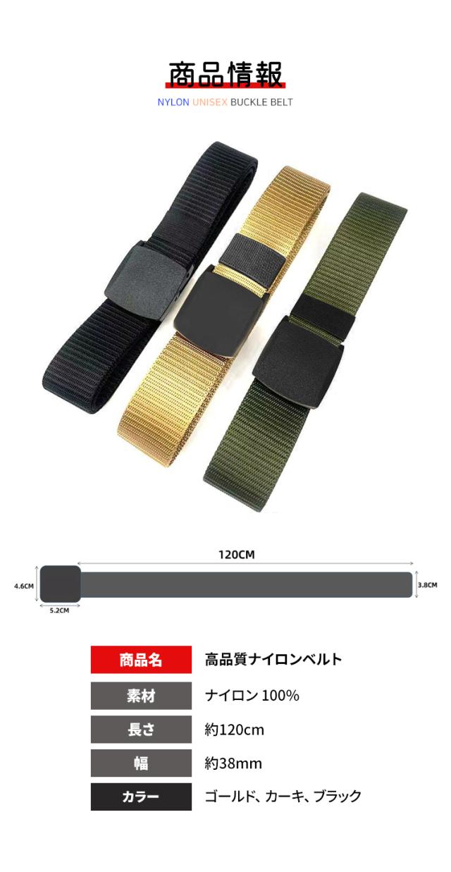 商品名 : 超軽量 高品質 ナイロンベルト 男女兼用 金属未使用 フリーサイズ メンズ レディース カジュアル 作業用