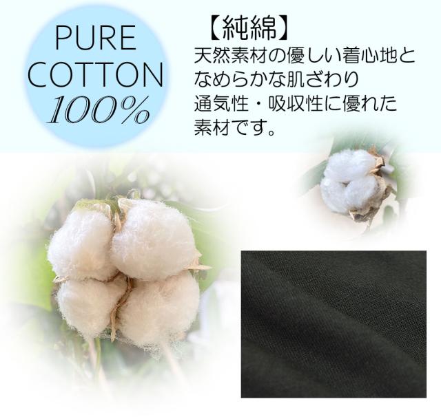 ■純綿100%:天然素材の優しい着心地となめらかな肌ざわり、通気性・吸収性に優れた素材です。